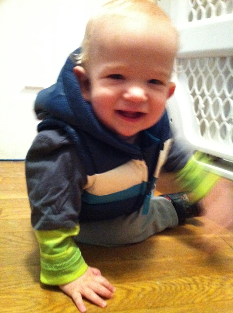 Holden is one super fast baby. He never stops moving! I guess it's because he tries to keep up with his brother. Holden is a constantly on the go and is so efficient at getting where he wants to be crawling, cruising, and climbing- but is yet to walk.